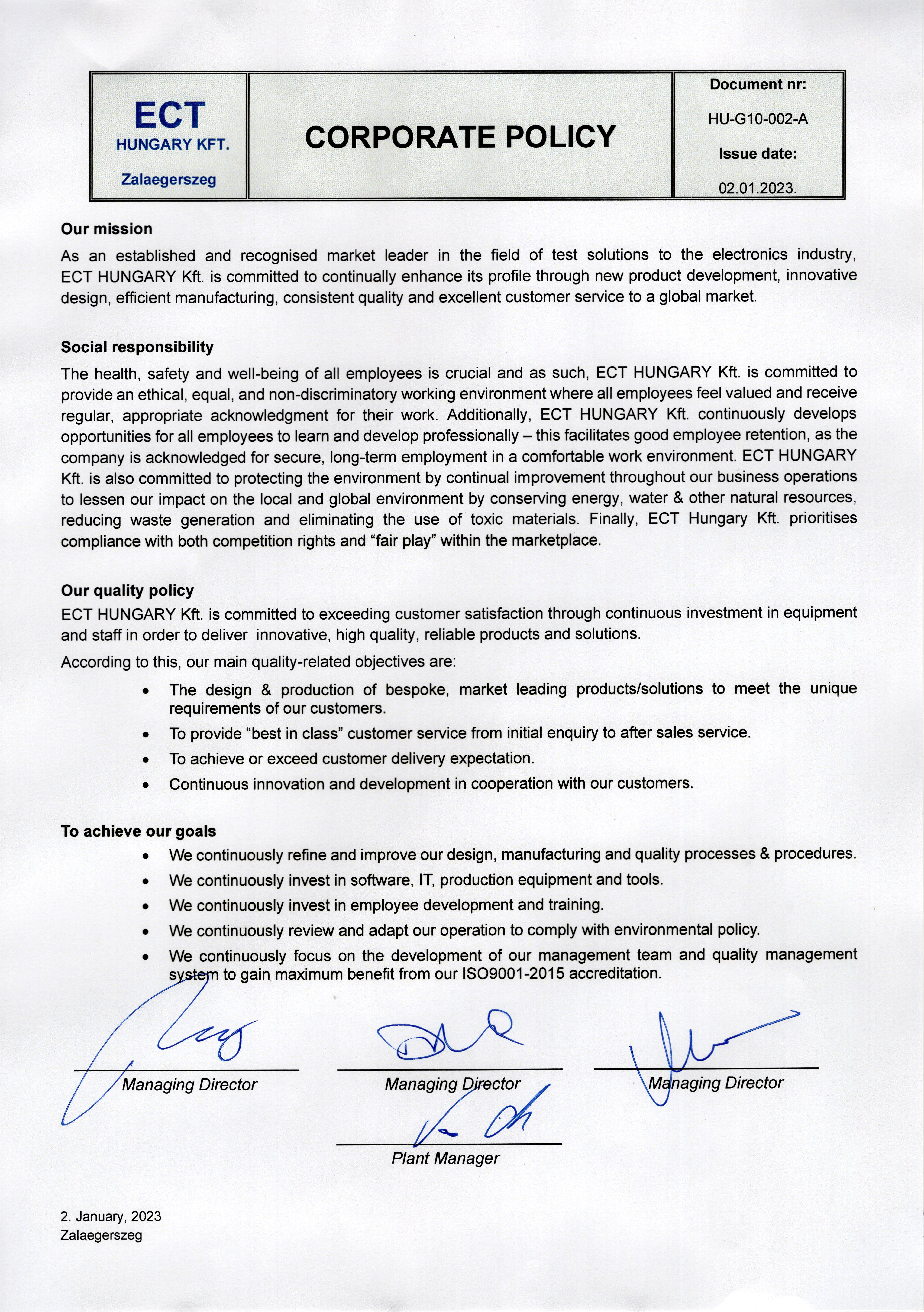A BOERE precíziós csiszológép üzembe helyezésével a távol-keleti megrendelés kiváltásával jelentősen javítjuk termelésünk rugalmasságát, javítjuk az ellátási biztonságot, javítjuk az ECT Hungary Kft logisztikai teljesítményét a vevők felé. Átlagos átfutási időt 6 hétről 5 hétre tervezzük csökkenteni. Lehetőségünk lesz készletünk csökkentésére, a belföldi beszerzés a távol keleti beszerzéssel szemben (Lead-Time: 3 hónap) Just In Time (kis mennyiségben 1-2 nap, nagy mennyiségben 2-3 hét határidővel) beszállítási rendszerben biztosítja az alapanyagot (méretre vágott üvegszál kompozit tábla), mindig azt az alapanyagot beszállítva, ami éppen szükséges.